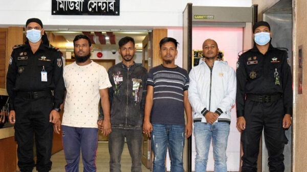 র্যাবের আইন ও গণমাধ্যম শাখার পরিচালক কমান্ডার খন্দকার আল মঈন জানান, ঢাকার মিরপুরের কালশী এলাকায় বাসে আগুন দেওয়ার অভিযোগে ৪ জনকে গ্রেপ্তার করা হয়েছে। আগুন দেওয়ার পর নিজেদের গ্রুপের মধ্যে